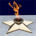 Звезда переносного модуля вечного огня собирается из качественной нержавеющей стали, марки AISI304, затем шлифуется и полируется до зеркального блеска. Стандартный размер звезды вечного огня – 1100 миллиметров в диаметре, высота по центральной оси 140 миллиметров.